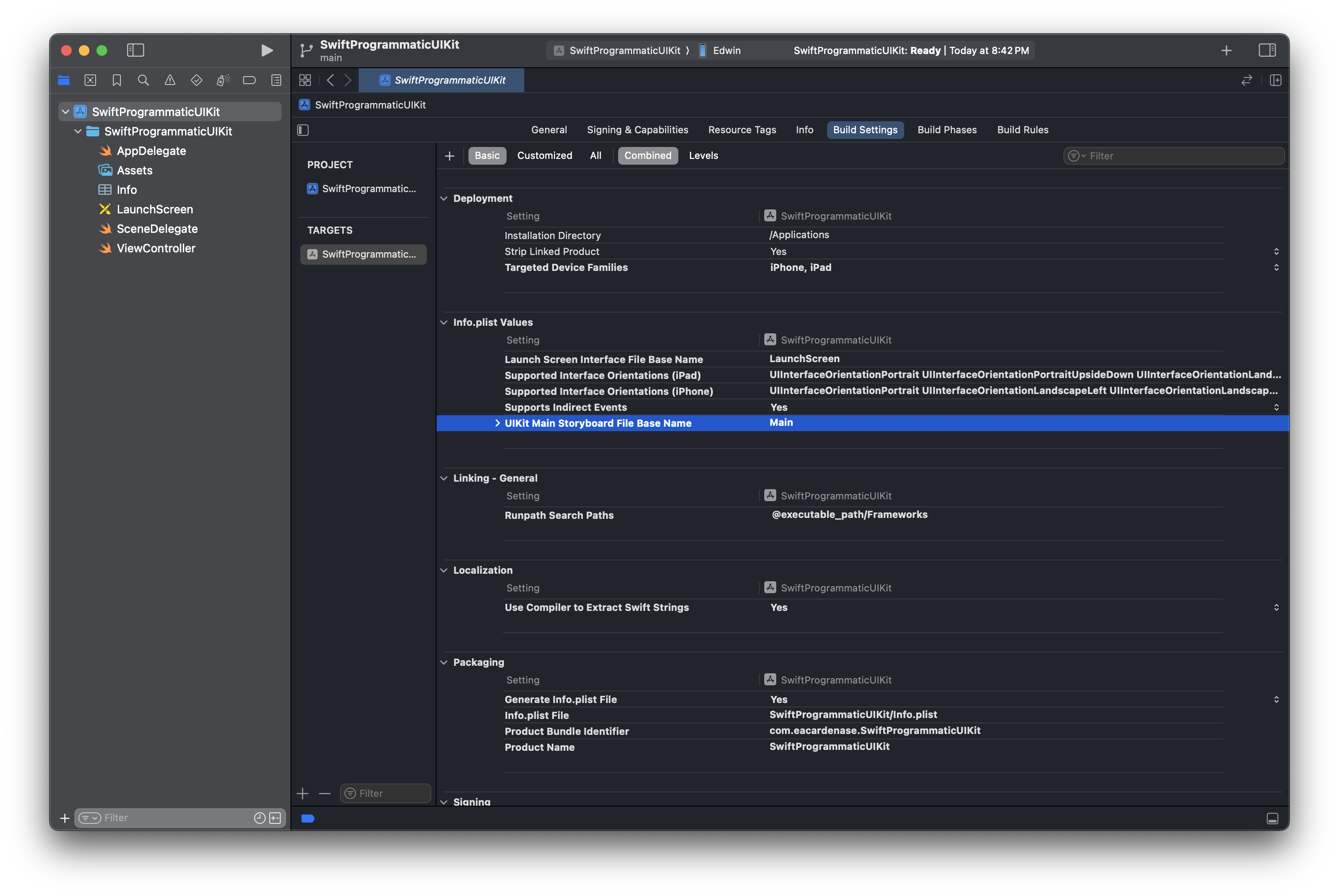 Now that everything is setup, we need to get rid of that dreaded Main.storyboard and setup our application to use programmatic UIKit.