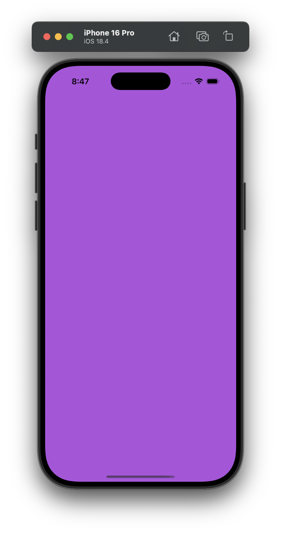 Let’s start by setting the backgroundColor of our default ViewController’s view to UIColor.systemPurple within the viewDidLoad method. This will give us a visual guide and help us make sure that our changes work.